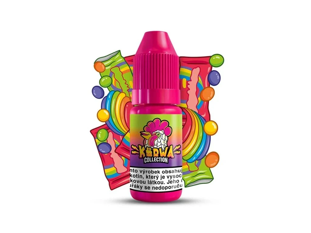 Kurwa Collection Rainbow je ovocný chaos v tom dobrém slova smyslu - barevný mix ovocných sladkých i nakyslých tónů, kde každý šluk odhaluje něco jiného. Citrus, lesní ovoce, exotika - všechno v jednom. 20 mg/ml salt nic, 60/40 PG/VG.
